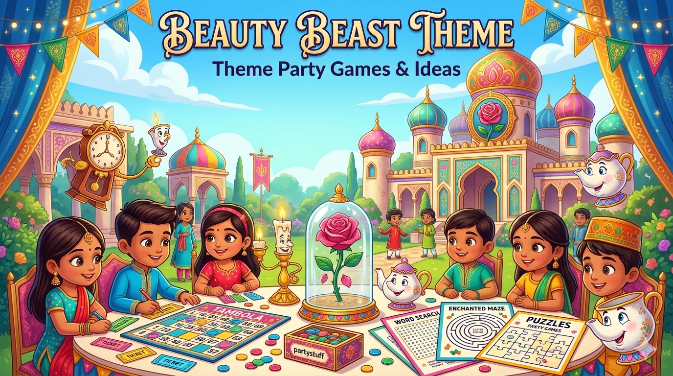 partystuff offers Tambola Housie for Beauty Beast theme event.