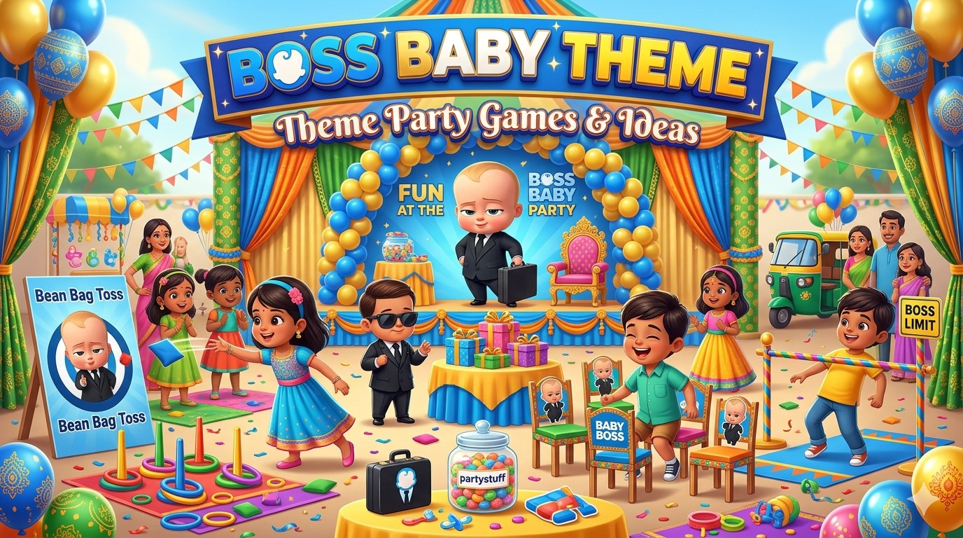 partystuff offers Labels, Cards, Decoration, Tambola Housie, Paper Games for Boss Baby theme event.