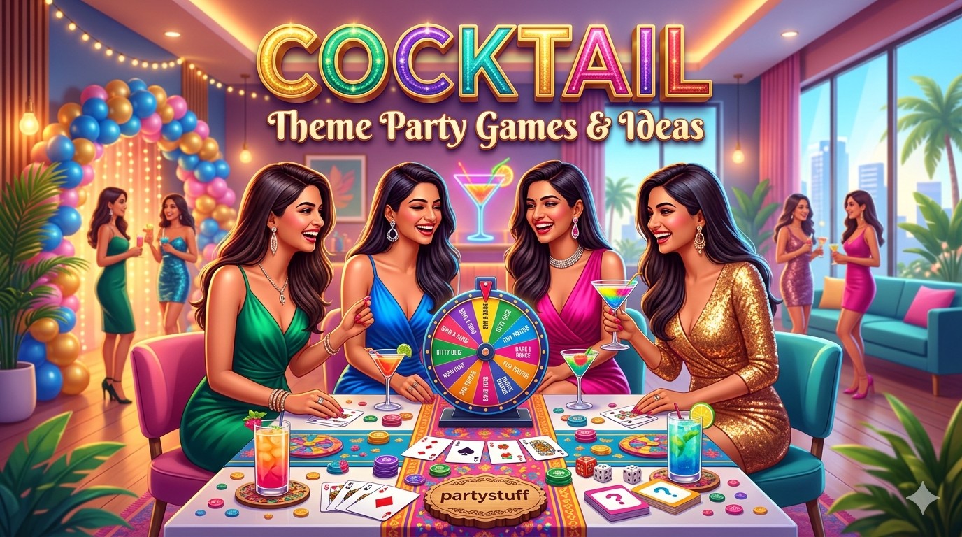 partystuff offers Tambola Housie, Cards, Paper Games, Decoration for Cocktail theme event.