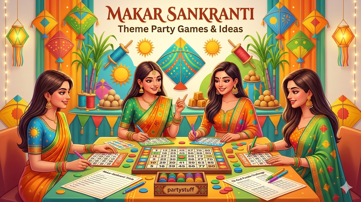 partystuff offers Tambola Housie, Props, Cards, Paper Games for Makar Sankranti theme event.