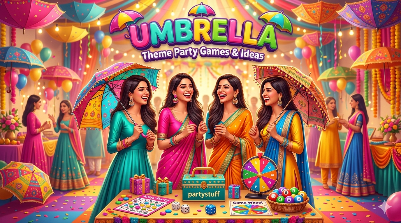 partystuff offers Tambola Housie, Paper Games for Umbrella theme event.