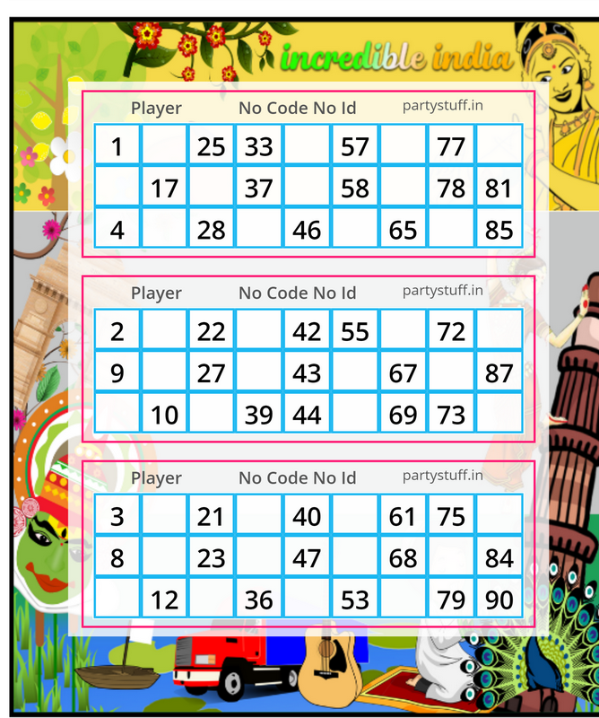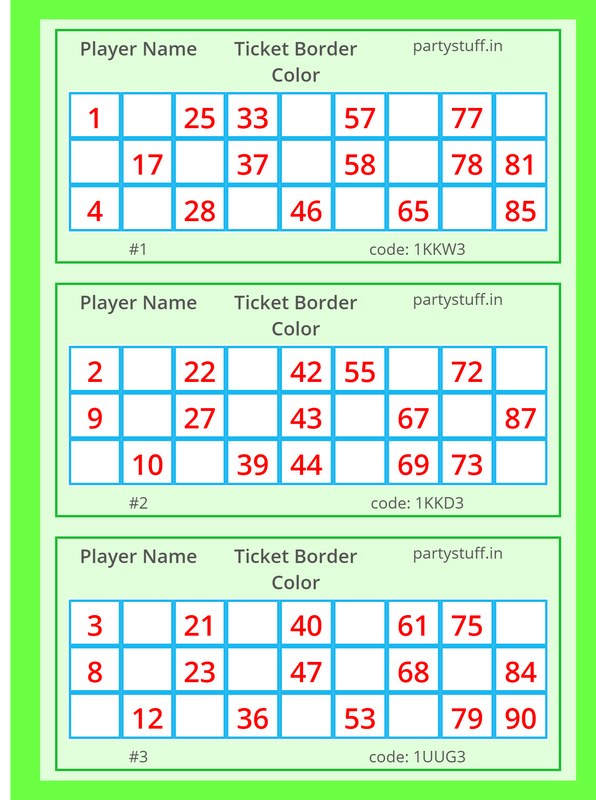 Generate quick tambola tickets at speed tambola ticket generator. Customise it with color, host name, player name, designer background, capture a screenshot, share ticket image/link/code/QR with player, players can view designer ticket online, use code to check ticket online